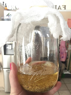 - Leave the seeds, without water, in the mason jar on your counter (I had ours on the little shelf by the window above our kitchen sink. They don't get direct sunlight)